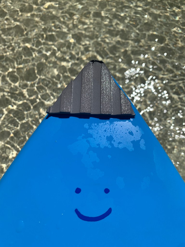 An easy way to paddle into the wind or in choppy water is is lie down on your board and paddle with both hands. Tuck your Sup paddle under your chest so you have both hands free to surf paddle.