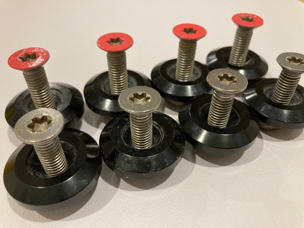 The most common track bolt is a M8 Torx countersunk bolt, typically 25mm, 30mm or 35mm long. Never use a bolt that is too long as it can damage your foil box. Try colour coding each size bolt to ensure you always pick the right size for the right board.