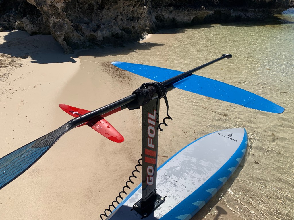 The general rule for paddle length for Downwind Foil Sup is to start around your head height. Buying an adjustable paddle can help find that preferred length before settling on a lighter permanent fixed length paddle.
