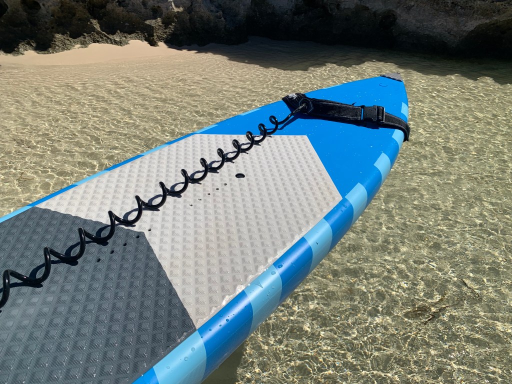 When walking long distances use your waist leash to secure your paddle to your fuselage. This allows you have both hands free to walk and carry your board.
