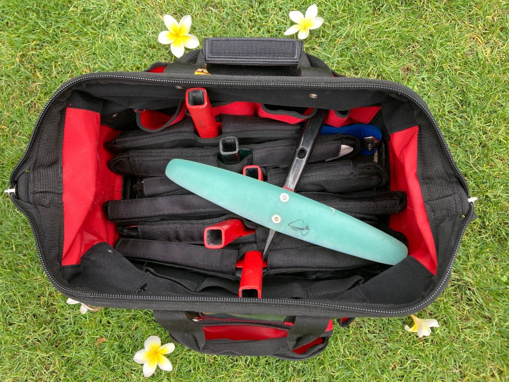Keep you tails organised like a pro with a carry bag. Pictured is the Sidchrome 19” open mouth tote bag. This easily fits 10 tails, tools, spare bolts and footstraps.